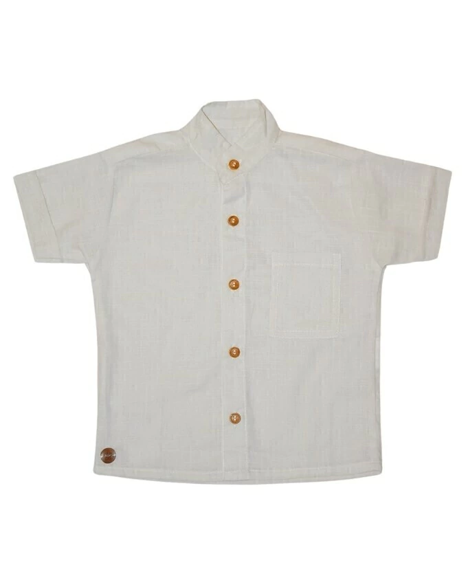 A Camisa Gola Padre Roma une estilo e conforto para os meninos em dias quentes. Com gola padre moderna, bolso frontal e tecido leve, é ideal para passeios e eventos especiais.