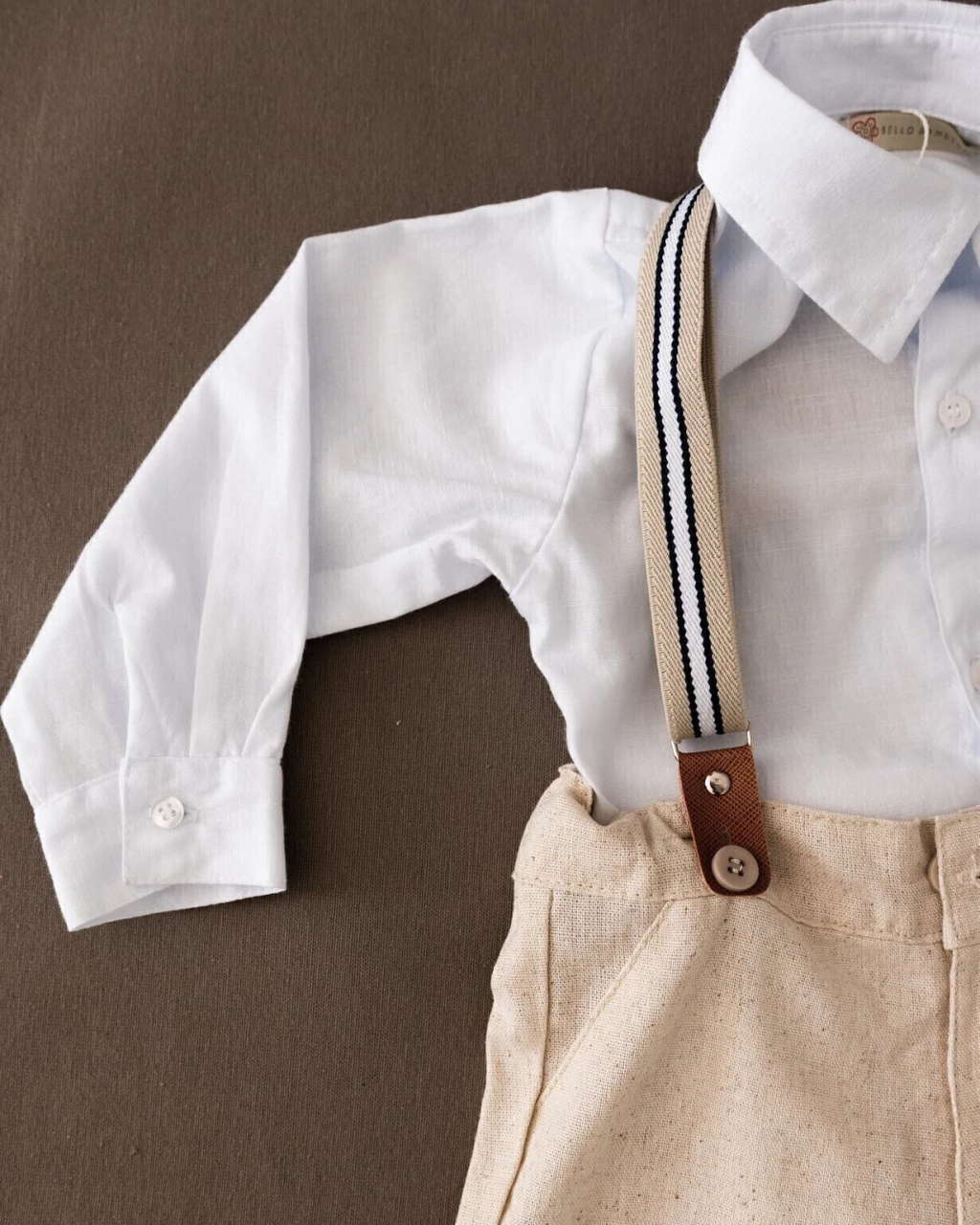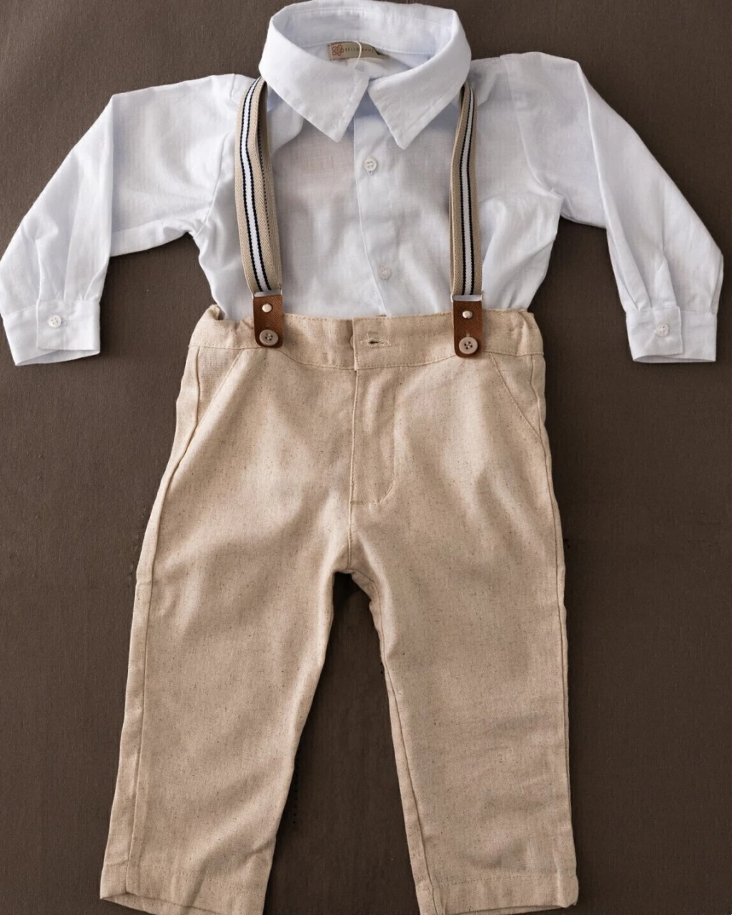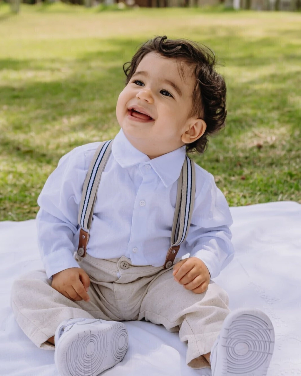 O Conjunto Vaticano Suspensório Elástico é a escolha ideal para batizados e eventos especiais. Com suspensórios elásticos que proporcionam ajuste confortável, e tecido macio, seu pequeno estará elegante, livre para brincar e cheio de charme em momentos únicos.