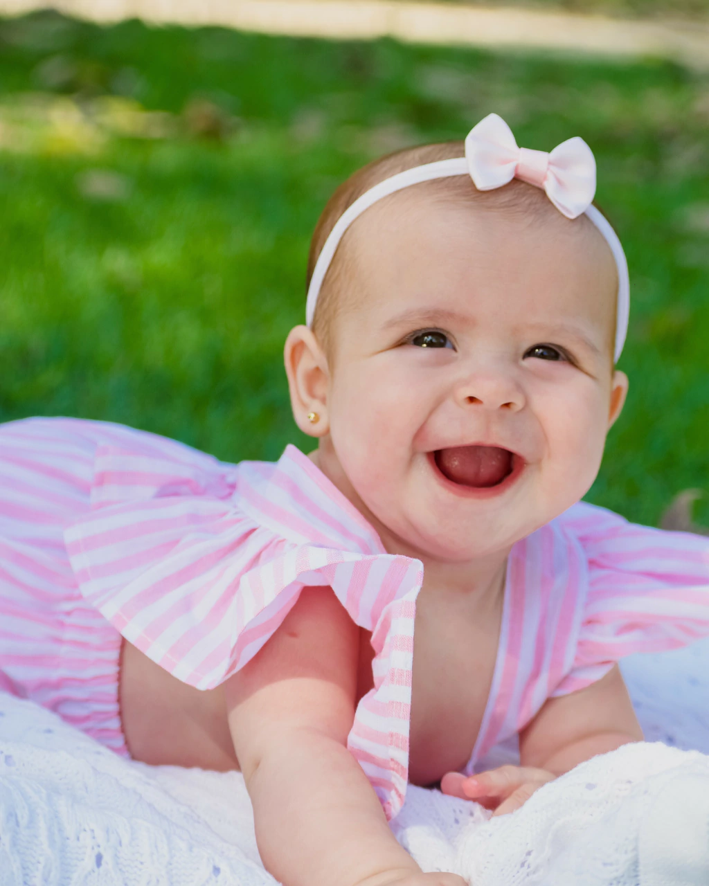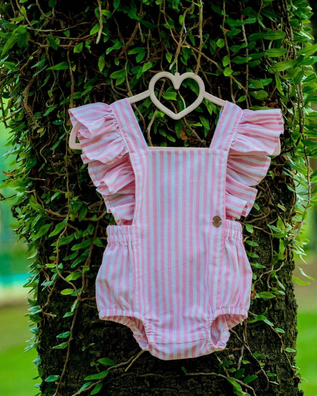 Perfeito para meninas bebês, o Romper Babado Capri une conforto e estilo com seu tecido 100% algodão Supertone. Com listras delicadas em rosa e branco, proporciona frescor e liberdade para os momentos do dia a dia.