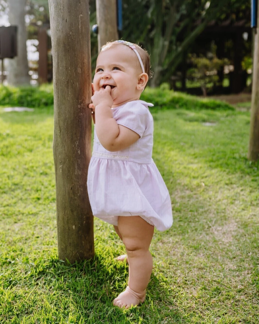 Com design atemporal e caimento suave, o Romper Verona valoriza toda a doçura e leveza da infância.
