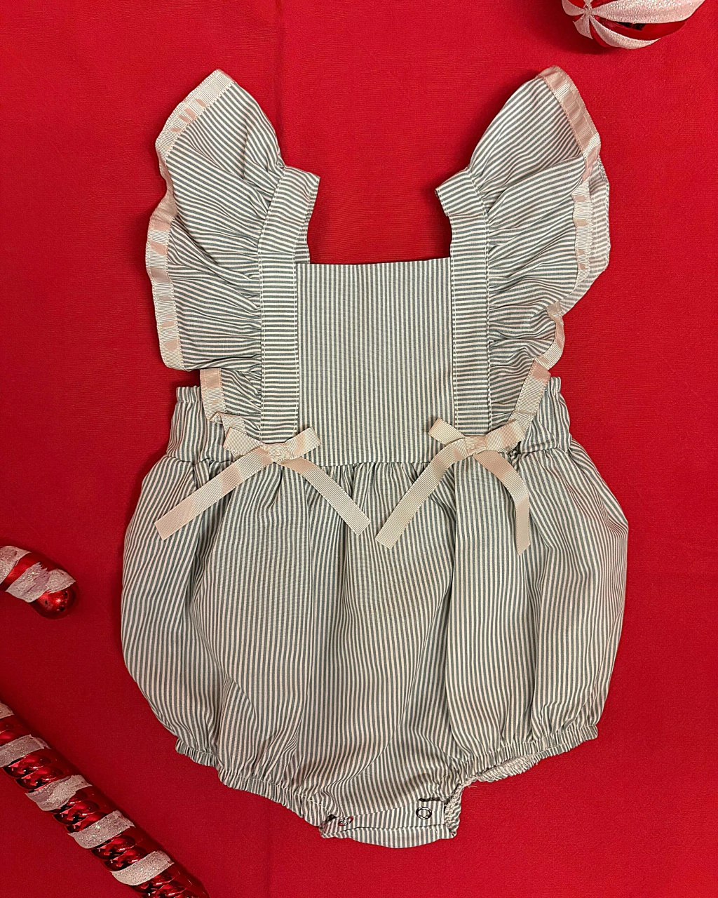 Celebre o Natal com encanto e exclusividade. O Romper com Fita Listras faz parte da Coleção Cápsula de Natal Bello Bambino, uma edição limitada criada para tornar os primeiros momentos do seu bebê ainda mais especiais.