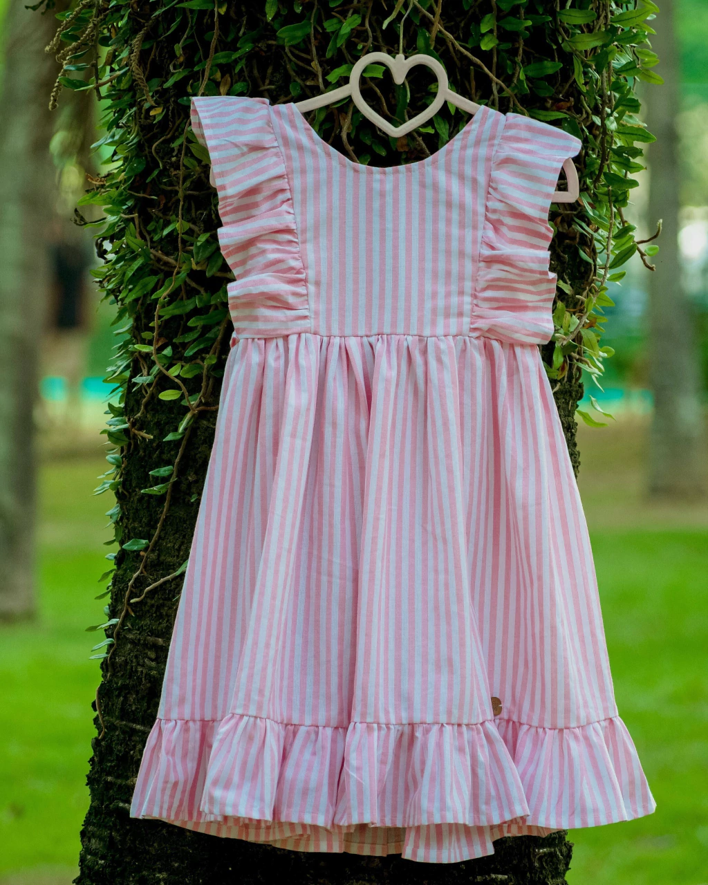 O Vestido Babado Capri Rosa é delicado, moderno e confortável — ideal para momentos especiais ou o dia a dia. Com listras suaves, babados nas alças e elástico nas costas, proporciona charme e liberdade para as pequenas. Acompanha laço de cabelo para completar o look!