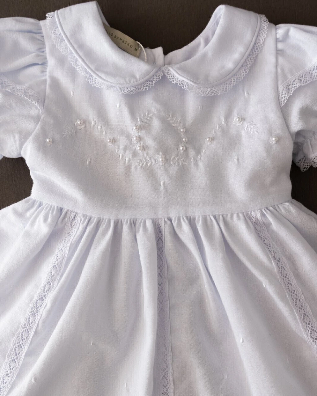 Descubra a delicadeza do Vestido Vaticano Bordado Curvas, com bordados delicados que deixam o visual ainda mais encantador. Ideal para batizado, seu tecido leve e macio garante conforto à pele sensível da sua pequena, unindo estilo e sofisticação da linha Vaticano.